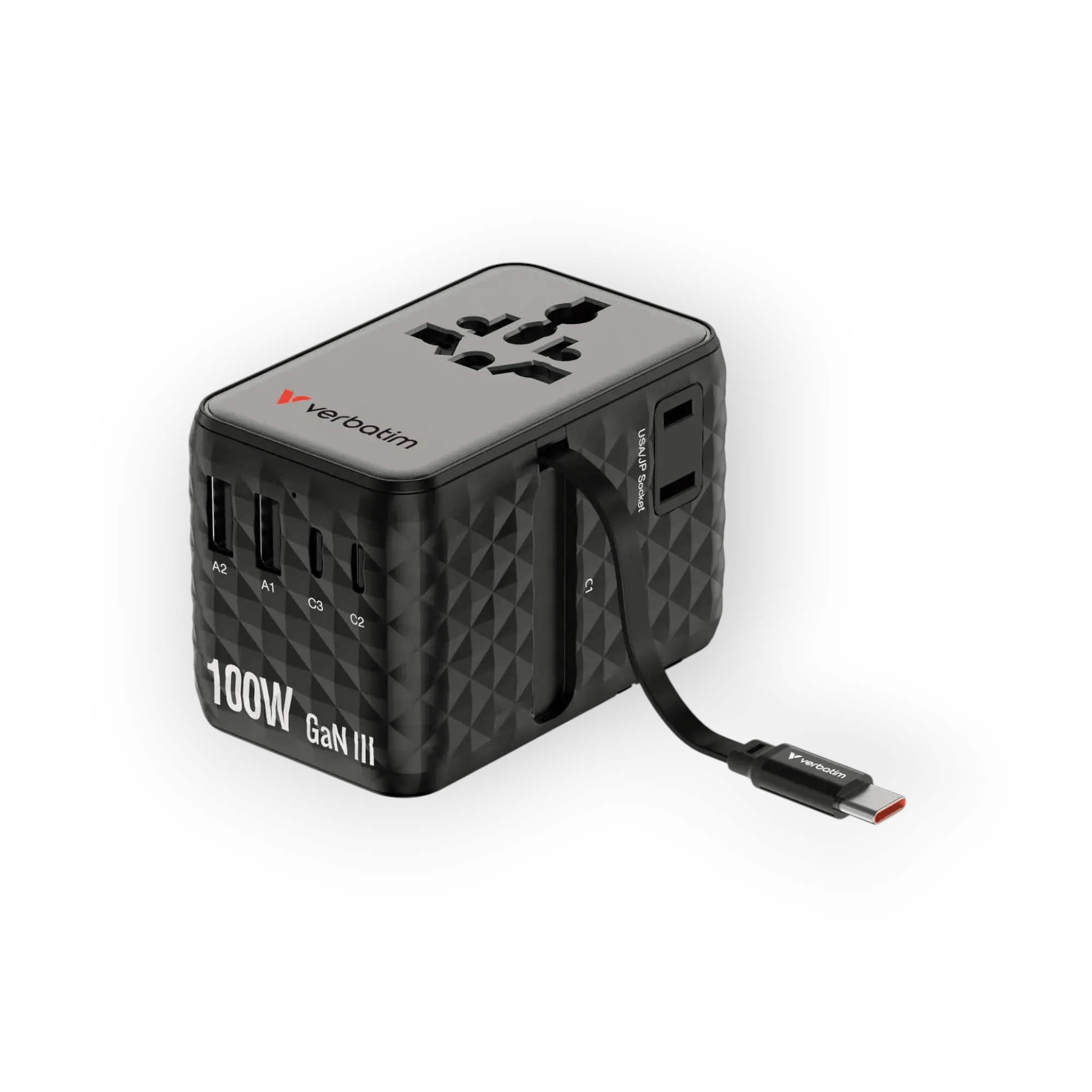 Ausgestattet mit 7-in-1-Funktionalität und bis zu 100 W Ausgangsleistung lädt dieser Reise Adapter Ihre gesamte digitale Ausrüstung. Nutzen Sie die AC-Buchsen für Standardstecker, das einziehbare USB-C-Kabel für schnellen Zugriff und die vier USB-Anschlüsse für zusätzliche Geräte. Die GaN-III-Technologie bietet dieselbe hohe Leistung bei besserer Energieeffizienz, niedrigerem Betriebstemperaturbereich und geringerem Platzbedarf – ideal für alle, die schnell und flexibel über Grenzen hinweg laden möchten.