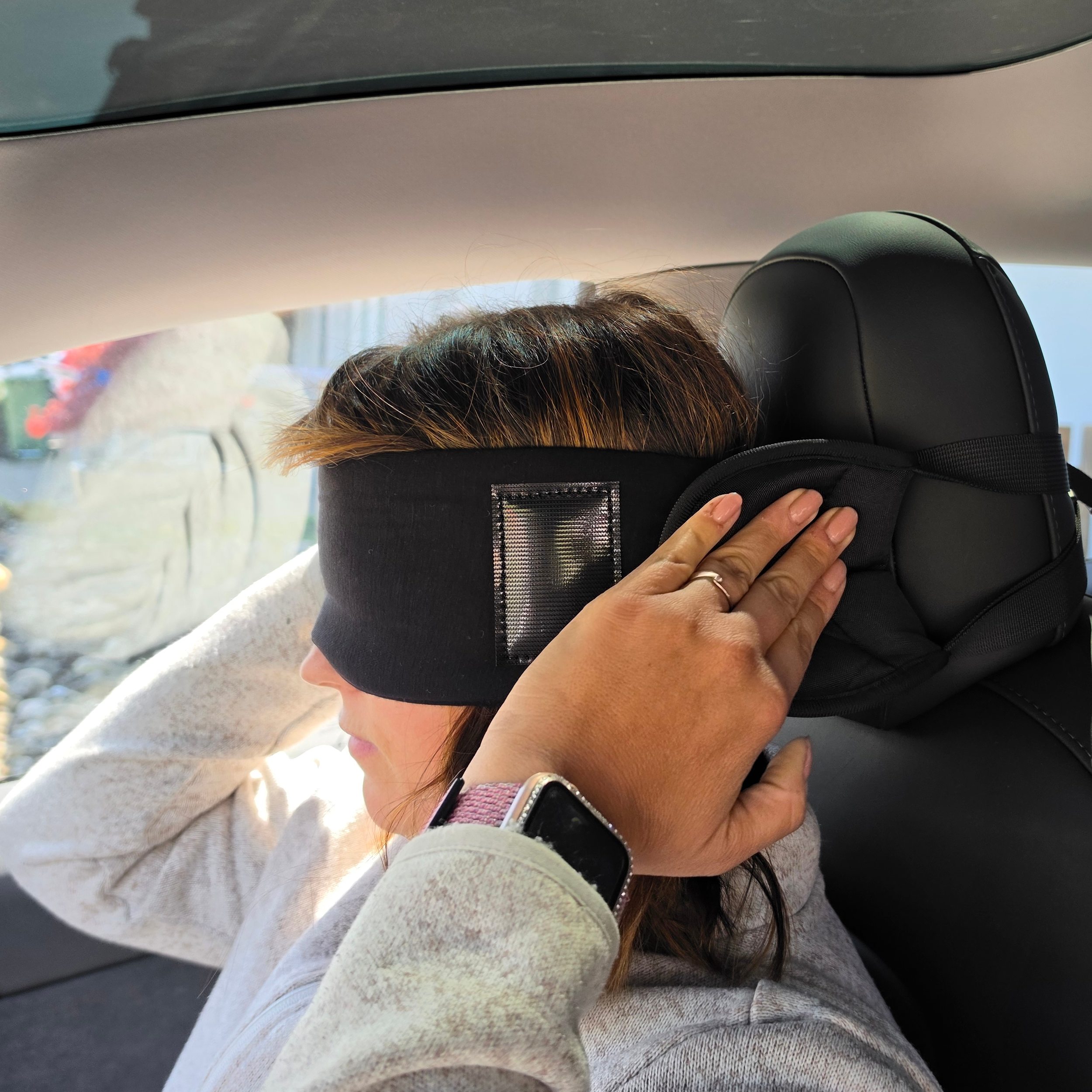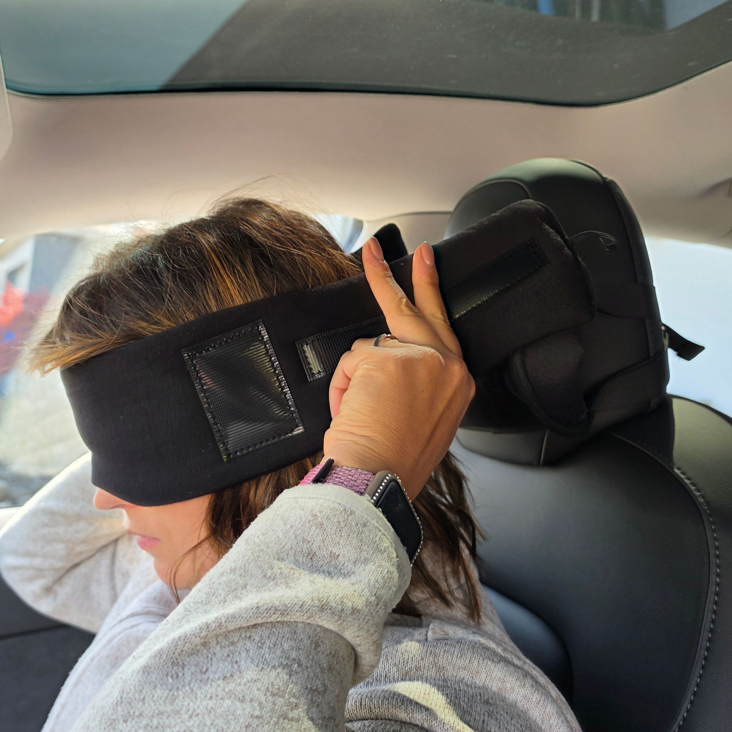 - Befestigungsschlaufen, damit dein Kopf nicht wegknickt
