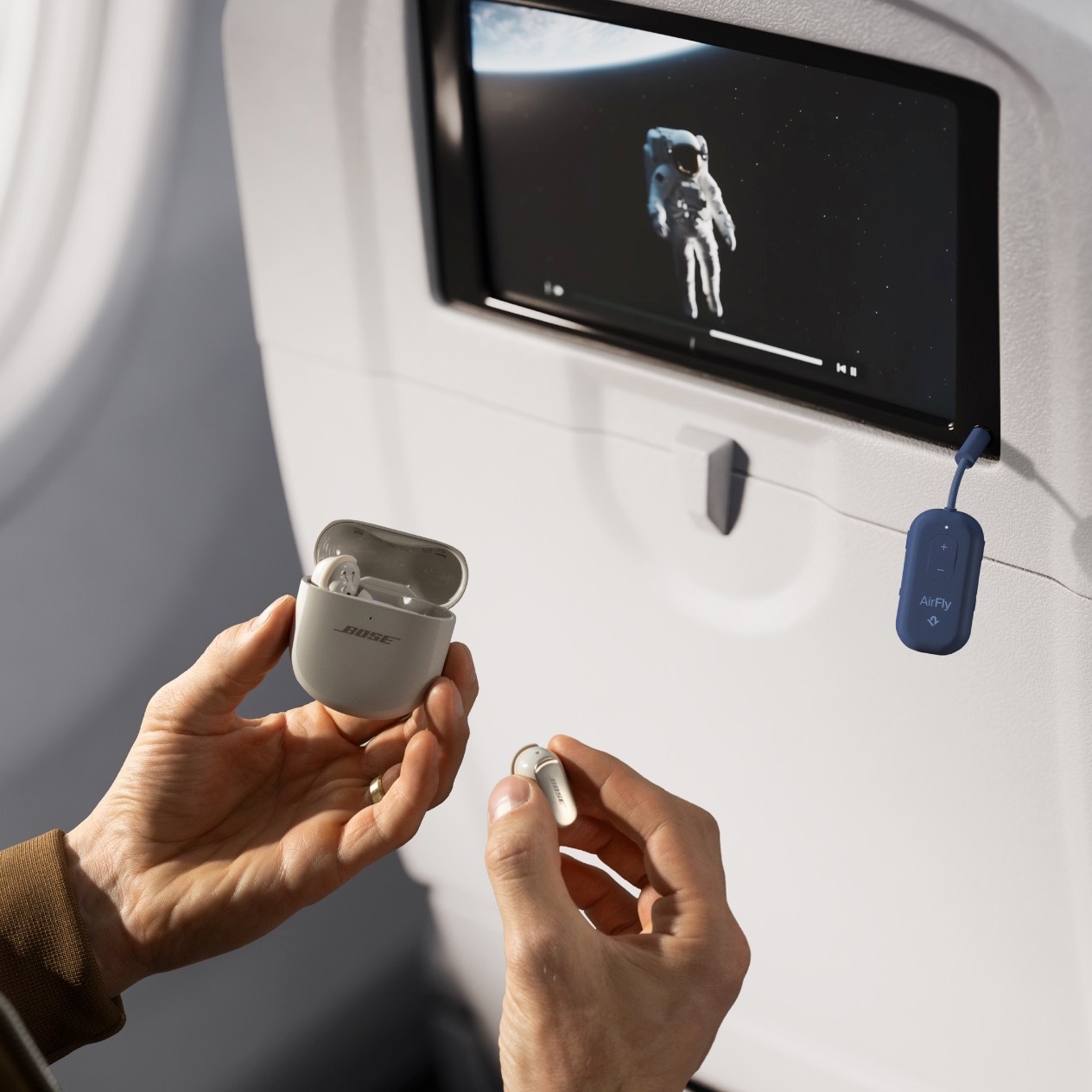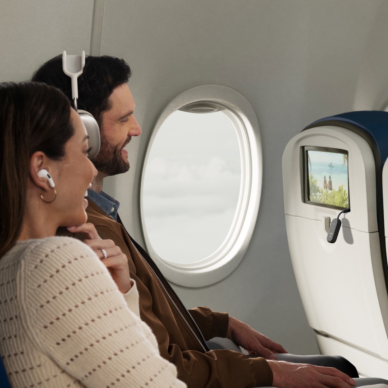 Das Beste wurde gerade noch besser. Lerne AirFly Pro 2 kennen – die einfachste Art, mit deinen eigenen kabellosen Kopfhörern Unterhaltung während des Fluges zu genießen. Verabschiede dich von den kabelgebundenen Ohrstöpseln der Fluggesellschaften und genieße bei jedem Flug kabellosen Klang in hoher Qualität.
